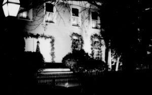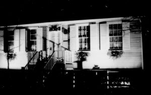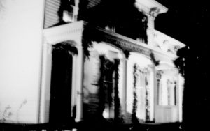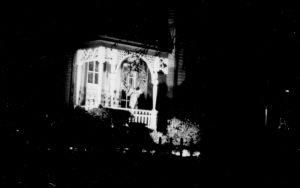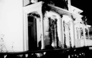 Lincoln Home NHS- Christmas in Lincoln Neighborhood Hosue decorated for Christmas, location unknown. Dean? neighborhood, night, Christmas, wreath, decor