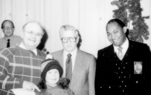 Lincoln Home NHS- Christmas in Lincoln Neighborhood Looking north, visitors and staff gathered for photo in Visitor Center theater 1. Christmas, ceremony, staff, vip, visitor, center