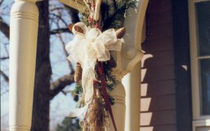 Lincoln Home NHS- Christmas in Lincoln Neighborhood Looking south west toward porch detail on Dean house. Christmas, neighborhood, Dean, decoration, detail