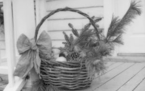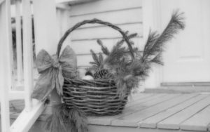 Lincoln Home NHS- Christmas in Lincoln Neighborhood Looking north east, Christmas basket on porch of Corneau house. Detail. Christmas, decorations, neighborhood, Corneau, basket, decor, porch