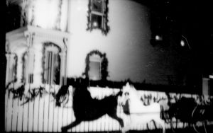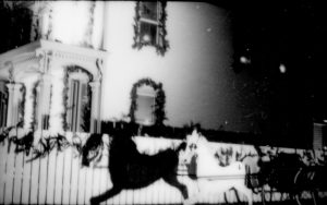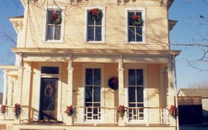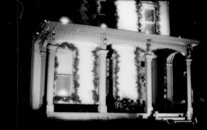 Lincoln Home NHS- Christmas in Lincoln Neighborhood Looking north west, Christmas decor on Beedle house porch at night. Christmas, decorations, neighborhood, night, decor, Beedle, porch