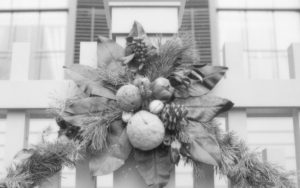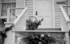 Lincoln Home NHS- Christmas in Lincoln Neighborhood Looking north east, Christmas basket on porch of Corneau house. Detail. Christmas, decorations, neighborhood, decor, detail, porch, Corneau