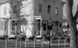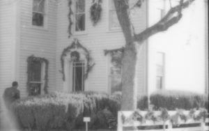 Lincoln Home NHS- Christmas in Lincoln Neighborhood Looking north east, Christmas decor on Corneau fence and house. Christmas, neighborhood, Corneau, fence, wreath, garland, porch