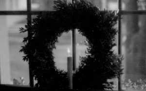 Lincoln Home NHS- Christmas in Lincoln Neighborhood Looking east from 8th Street, Christmas decor on Robinson house door and porch. Christmas, neighborhood, Robinson, decor, wreath, porch