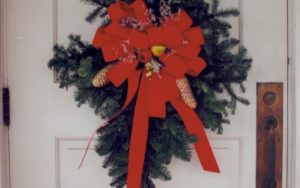 Lincoln Home NHS- Christmas in Lincoln Neighborhood Looking west from 8th Street, Christmas decor on Rosenwald house. Christmas, neighborhood, Lyon, wreath, Rosenwald, garland