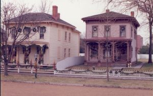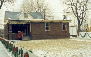 Lincoln Home NHS- Christmas in Lincoln Neighborhood Looking east toward Arnold house and lot. Pre-restoration. Christmas, neighborhood, Arnold, decoration, pre-restoration