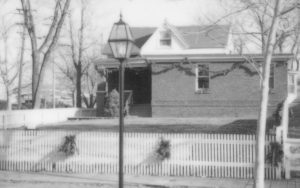 Lincoln Home NHS- Christmas in Lincoln Neighborhood Looking east from 8th Street, Christmas decor on Arnold house and fence. Christmas, neighborhood, Arnold, wreath, garland, decor