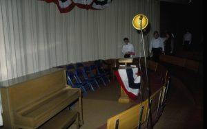 Set up for musical in theater one. Lincoln Home NHS- Lincoln's Birthday 1988 birthday, Lincoln, Douglas, musical Set up for musical in theater one. Lincoln Home NHS- Lincoln's Birthday 1988 birthday, Lincoln, Douglas, musical