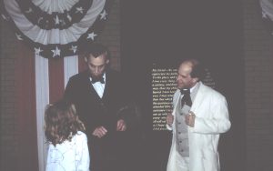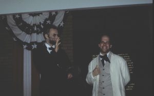 Two impersonators interacting. Lincoln Home NHS- Lincoln's Birthday 1988 birthday, Lincoln, Douglas, musical Two impersonators interacting. Lincoln Home NHS- Lincoln's Birthday 1988 birthday, Lincoln, Douglas, musical
