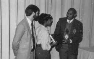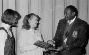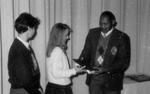 Award being given to young lady. Lincoln Home NHS- Lincoln's Birthday 1988, 26 birthday, Lincoln, award Award being given to young lady. Lincoln Home NHS- Lincoln's Birthday 1988, 26 birthday, Lincoln, award
