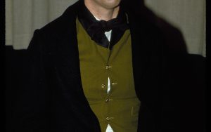 Man in period dress seated. Lincoln Home NHS- Lincoln's Birthday birthday, Lincoln, play Man in period dress seated. Lincoln Home NHS- Lincoln's Birthday birthday, Lincoln, play
