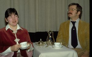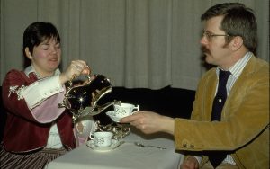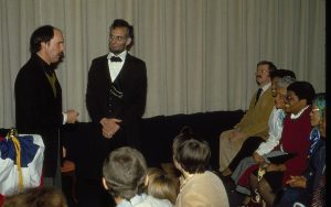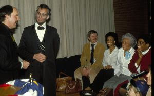 Close up of man with picture on wall behind him. Lincoln Home NHS- Coretta King Visit, 1000 King, visit, reception Close up of man with picture on wall behind him. Lincoln Home NHS- Coretta King Visit, 1000 King, visit, reception