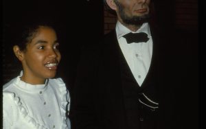 Young lady and Lincoln impersonator. Lincoln Home NHS- Lincoln's Birthday birthday, Lincoln, play Young lady and Lincoln impersonator. Lincoln Home NHS- Lincoln's Birthday birthday, Lincoln, play