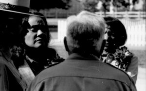 Two Rangers talking to two ladies. Lincoln Home NHS- Coretta King Visit King, visit Two Rangers talking to two ladies. Lincoln Home NHS- Coretta King Visit King, visit