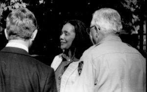 Ranger with lady and man. Lincoln Home NHS- Coretta King Visit King, visit Ranger with lady and man. Lincoln Home NHS- Coretta King Visit King, visit