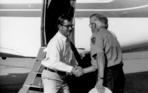 Ranger shaking hands with man at plane. Lincoln Home NHS- Coretta King Visit King, visit, airport Ranger shaking hands with man at plane. Lincoln Home NHS- Coretta King Visit King, visit, airport