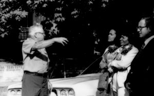 Ranger talking to two ladies & a man. Lincoln Home NHS- Coretta King Visit King, visit Ranger talking to two ladies & a man. Lincoln Home NHS- Coretta King Visit King, visit