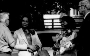Two ladies shaking hands in VC Lincoln Home NHS- Coretta King Visit King, visit Two ladies shaking hands in VC Lincoln Home NHS- Coretta King Visit King, visit