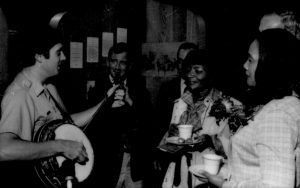 Ranger playing banjo. Lincoln Home NHS- Coretta King Visit King, visit, reception Ranger playing banjo. Lincoln Home NHS- Coretta King Visit King, visit, reception