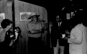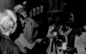 Rangers talking with lady holding refreshments. Lincoln Home NHS- Coretta King Visit King, visit, reception Rangers talking with lady holding refreshments. Lincoln Home NHS- Coretta King Visit King, visit, reception