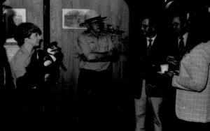 Rangers holding stuffed animal. Lincoln Home NHS- Coretta King Visit King, visit, reception Rangers holding stuffed animal. Lincoln Home NHS- Coretta King Visit King, visit, reception