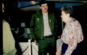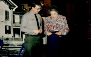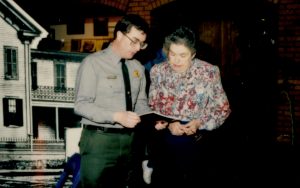 Staff and lady talking so each other. Lincoln Home NHS- Author Ruth Ketchum visit, 11 Ketchum, visit Staff and lady talking so each other. Lincoln Home NHS- Author Ruth Ketchum visit, 11 Ketchum, visit