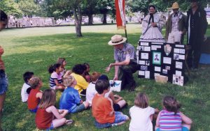 Children listening to lady in period dress. Lincoln Home NHS- Grierson Days Jacksonville Grierson, Jacksonville, celebration Children listening to lady in period dress. Lincoln Home NHS- Grierson Days Jacksonville Grierson, Jacksonville, celebration