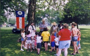 Chidren gathering around Ranger and people in period dress. Lincoln Home NHS- Grierson Days Jacksonville Grierson, Jacksonville, celebration Chidren gathering around Ranger and people in period dress. Lincoln Home NHS- Grierson Days Jacksonville Grierson, Jacksonville, celebration