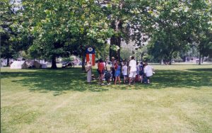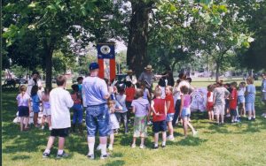 Children standing under tree with Ranger. Lincoln Home NHS- Grierson Days Jacksonville Grierson, Jacksonville, celebration Children standing under tree with Ranger. Lincoln Home NHS- Grierson Days Jacksonville Grierson, Jacksonville, celebration