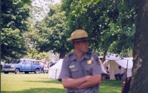 Ranger standing with arms folded. Lincoln Home NHS- Grierson Days Jacksonville Grierson, Jacksonville, celebration Ranger standing with arms folded. Lincoln Home NHS- Grierson Days Jacksonville Grierson, Jacksonville, celebration