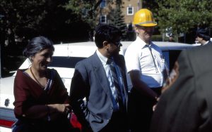 Two men and a lady standing by white car. Lincoln Home NHS- Foreign Dignitary Visit dignitary, visit, tour Two men and a lady standing by white car. Lincoln Home NHS- Foreign Dignitary Visit dignitary, visit, tour