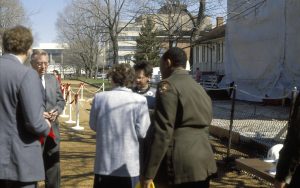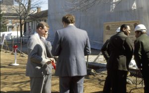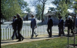 Group standing in street by fenced off area of home. Lincoln Home NHS- Foreign Dignitary Visit dignitary, visit, tour Group standing in street by fenced off area of home. Lincoln Home NHS- Foreign Dignitary Visit dignitary, visit, tour