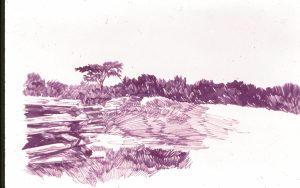Lincoln Home NHS- Old Post Road, Bicentennial Slide Show, 3 slide, Bicentennial, drawing, field, tree, fence, log Lincoln Home NHS- Old Post Road, Bicentennial Slide Show, 3 slide, Bicentennial, drawing, field, tree, fence, log