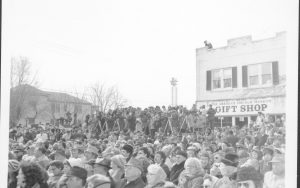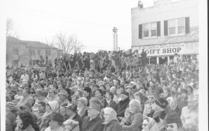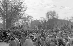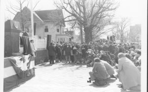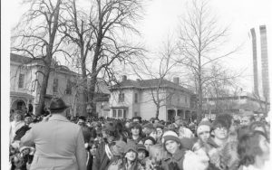 Ford visit- crowd, stand at Lincoln Home looking North Lincoln Home NHS- President Ford and Visitor Center Corner Stone, neg #33 class 1000, class 8 pic 6 President, Ford, visit