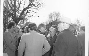 President Ford and Al Banton in crowd Lincoln Home NHS- President Ford and V.C. Corner Stone, neg #23 class 1000, class 8 pic 23, 133 President, Ford, visit, dedication