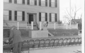 Supt. Al Banton setting up chairs for President Ford trip Lincoln Home NHS- President Ford and V.C. Corner Stone, neg #32 class 1000, class 8 pic 32, 142 President, Ford, visit