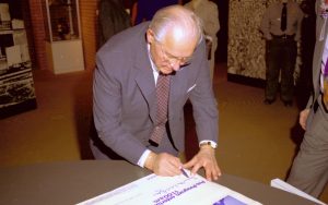 Man signing poster. Lincoln Home NHS- VIP Findley and Michel Visit to Lincoln Home visit, program Man signing poster. Lincoln Home NHS- VIP Findley and Michel Visit to Lincoln Home visit, program
