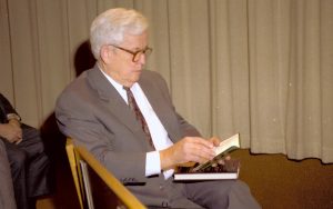 Man seated reading booklet. Lincoln Home NHS- VIP Findley and Michel Visit to Lincoln Home visit, program Man seated reading booklet. Lincoln Home NHS- VIP Findley and Michel Visit to Lincoln Home visit, program