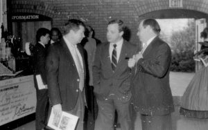 Three men conversing. Lincoln Home NHS- Paul Findley and Michel VIP visit, 119 Finley, Michel, visit, reception Three men conversing. Lincoln Home NHS- Paul Findley and Michel VIP visit, 119 Finley, Michel, visit, reception