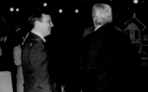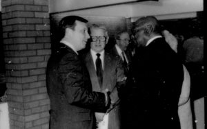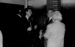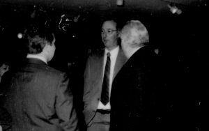 Two men conversing. Lincoln Home NHS- Paul Findley and Michel VIP visit, 119 Finley, Michel, visit, reception Two men conversing. Lincoln Home NHS- Paul Findley and Michel VIP visit, 119 Finley, Michel, visit, reception