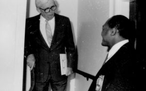 Two men conversing. Lincoln Home NHS- Paul Findley and Michel VIP visit, 118 Finley, Michel, visit, tour Two men conversing. Lincoln Home NHS- Paul Findley and Michel VIP visit, 118 Finley, Michel, visit, tour