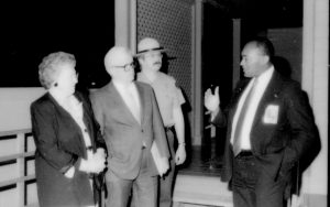 Two people coming through door. Lincoln Home NHS- Paul Findley and Michel VIP visit, 118 Finley, Michel, visit, tour Two people coming through door. Lincoln Home NHS- Paul Findley and Michel VIP visit, 118 Finley, Michel, visit, tour