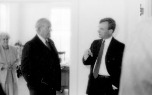 Two men conversing. Lincoln Home NHS- Paul Findley and Michel VIP visit, 117 Finley, Michel, visit, tour Two men conversing. Lincoln Home NHS- Paul Findley and Michel VIP visit, 117 Finley, Michel, visit, tour