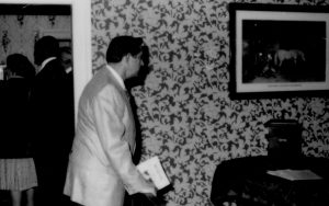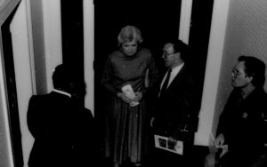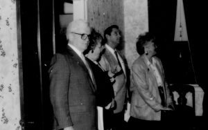 Crowd of people in hallway. Lincoln Home NHS- Paul Findley and Michel VIP visit, 117 Finley, Michel, visit, tour Crowd of people in hallway. Lincoln Home NHS- Paul Findley and Michel VIP visit, 117 Finley, Michel, visit, tour