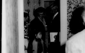 Man, woman and little boy in doorway. Lincoln Home NHS- Paul Findley and Michel VIP visit, 117 Finley, Michel, visit, tour Man, woman and little boy in doorway. Lincoln Home NHS- Paul Findley and Michel VIP visit, 117 Finley, Michel, visit, tour
