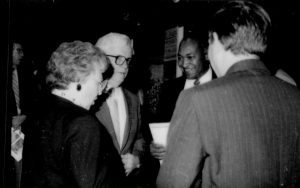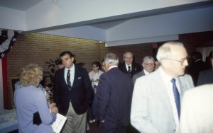 Four people standing, talking. Lincoln Home NHS- Paul Findley and Michel VIP visit, 117 Finley, Michel, visit, tour Four people standing, talking. Lincoln Home NHS- Paul Findley and Michel VIP visit, 117 Finley, Michel, visit, tour