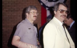Two men talking standing in front of farewell address sign. Lincoln Home NHS- VIP Findley and Michel Visit award, visit, reception Two men talking standing in front of farewell address sign. Lincoln Home NHS- VIP Findley and Michel Visit award, visit, reception