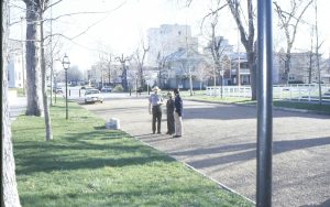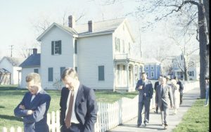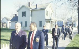 Group walking by Robinson house. Lincoln Home NHS- VIP Findley and Michel Visit award, visit, tour Group walking by Robinson house. Lincoln Home NHS- VIP Findley and Michel Visit award, visit, tour