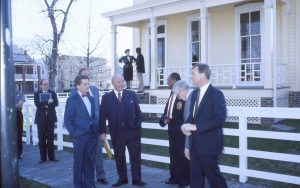 Group of men standing on board walk in front of white fence. Lincoln Home NHS- VIP Findley and Michel Visit award, visit, tour Group of men standing on board walk in front of white fence. Lincoln Home NHS- VIP Findley and Michel Visit award, visit, tour