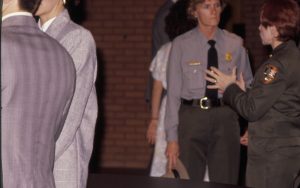 Two rangers conversing. Lincoln Home NHS- VIP Findley and Michel Visit award, visit, reception Two rangers conversing. Lincoln Home NHS- VIP Findley and Michel Visit award, visit, reception